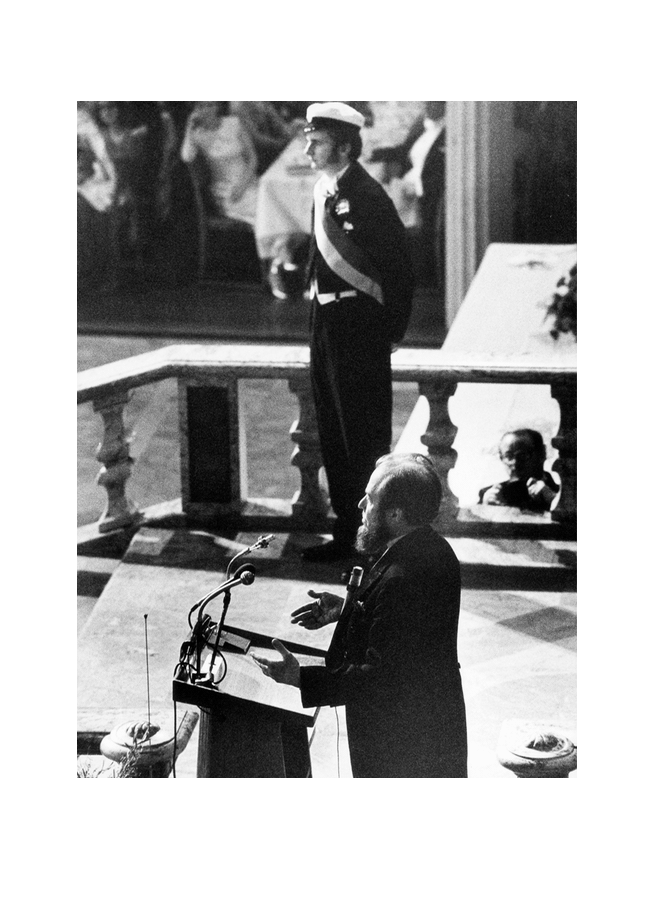 Александр Солженицын читает нобелевскую речь. Стокгольм, 10 октября 1974 года