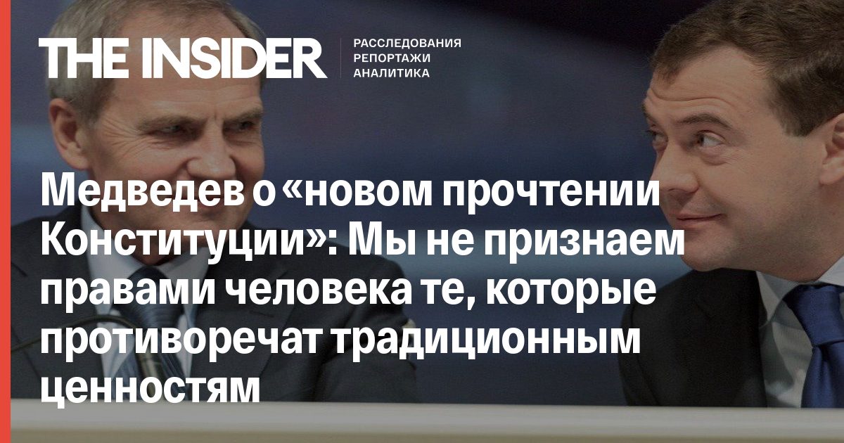 Медведев о «новом прочтении Конституции»: Мы не признаем правами человека те, которые противоречат традиционным ценностям