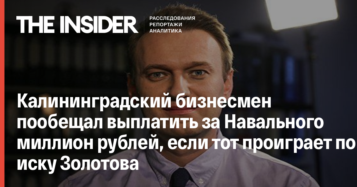 Калининградский бизнесмен пообещал выплатить за Навального миллион рублей, если тот проиграет по иску Золотова