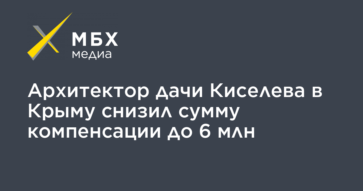 Архитектор дачи Киселева в Крыму снизил сумму компенсации до 6 млн