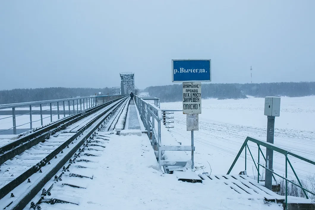 Мрачный мост времен Великой Отечественной — единственная связь Мадмаса (700 человек) со своей республикой во время ледостава и ледохода, когда не работает паром. Есть еще техническая дорога вдоль газопровода, но она ведет в Архангельскую область, и официально проезд по ней разрешен только сотрудникам «Газпрома». (На случай, если переноска покойников на спине вас не удивила: в Мадмасе нет газа.)