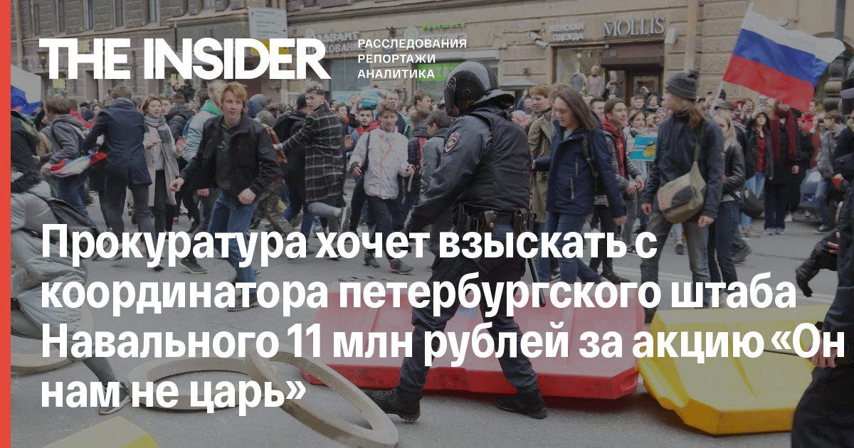 Прокуратура хочет взыскать с координатора петербургского штаба Навального 11 млн рублей за акцию «Он нам не царь»