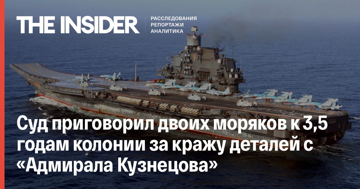 Военный суд в Мурманске признал старшину Арслана Ахмайсова и матроса Филиппа Филина виновными в краже 393 радиодеталей с авианосца «Адмирал Кузнецов» общей стоимостью более 1,4 млн руб. Об этом сообщает «Мурманский вестник».