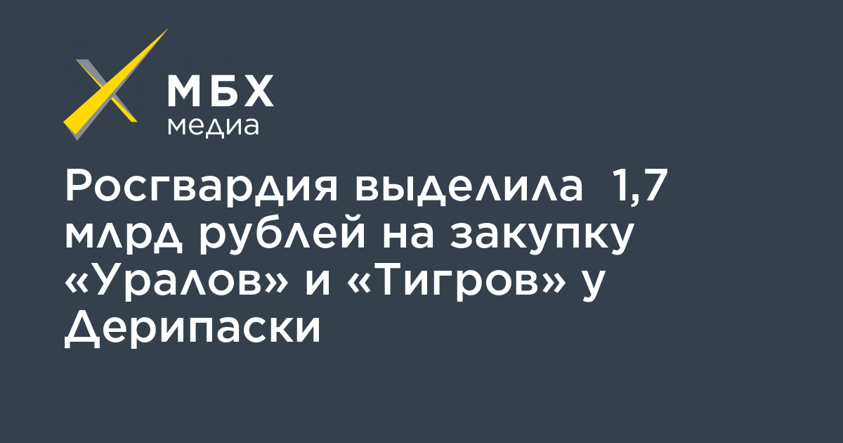 Росгвардия заключила контракты с заводами миллиардера Олега Дерипаски на поставку техники стоимостью 1,74 млрд рублей. Согласно документам, размещенным на портале госзакупок, служба приобретет 628 автомобилей «Урал-4320» за 1,57 млрд рублей и 15 машин «Тигр» за 163 млн рублей.