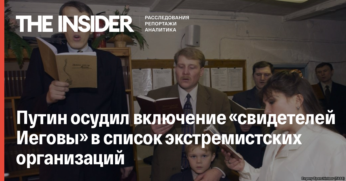 Путин осудил включение «свидетелей Иеговы» в список экстремистских организаций