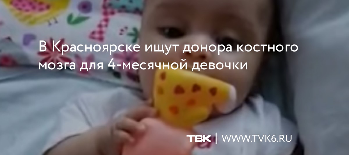 У 4-месячной Даши Гвоздёвой врачи обнаружили рак крови. По их словам, помочь ей может только пересадка костного мозга. Для этого нужен подходящий донор, но сейчас его в базе нет. Найти его пытаются по всей Сибири – жители сдают кровь.