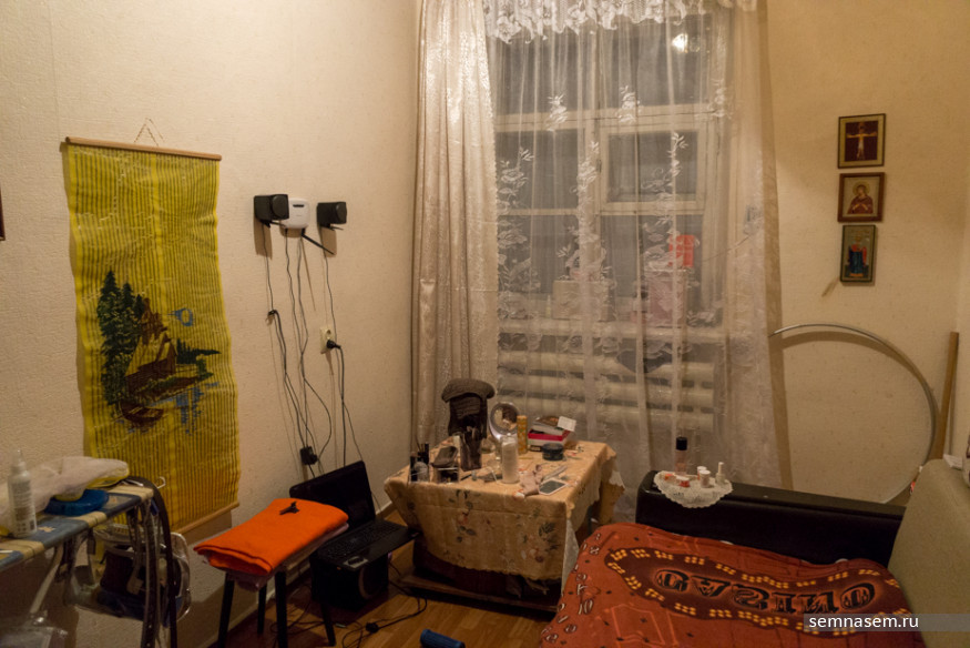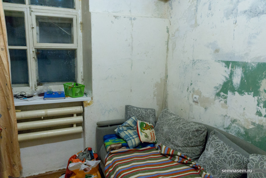 Алла Вальгейман живет в этом доме уже 12 лет. Ей принадлежит комната площадью 13,5 м2, которую она приватизировала в 2008 году через суд. Ее сыну принадлежит в этом же здании комната площадью 8,5 м2. По словам женщины, когда она сюда заселялась, все было не так плохо. Как минимум было очень тепло — зимой она спала с открытыми окнами.