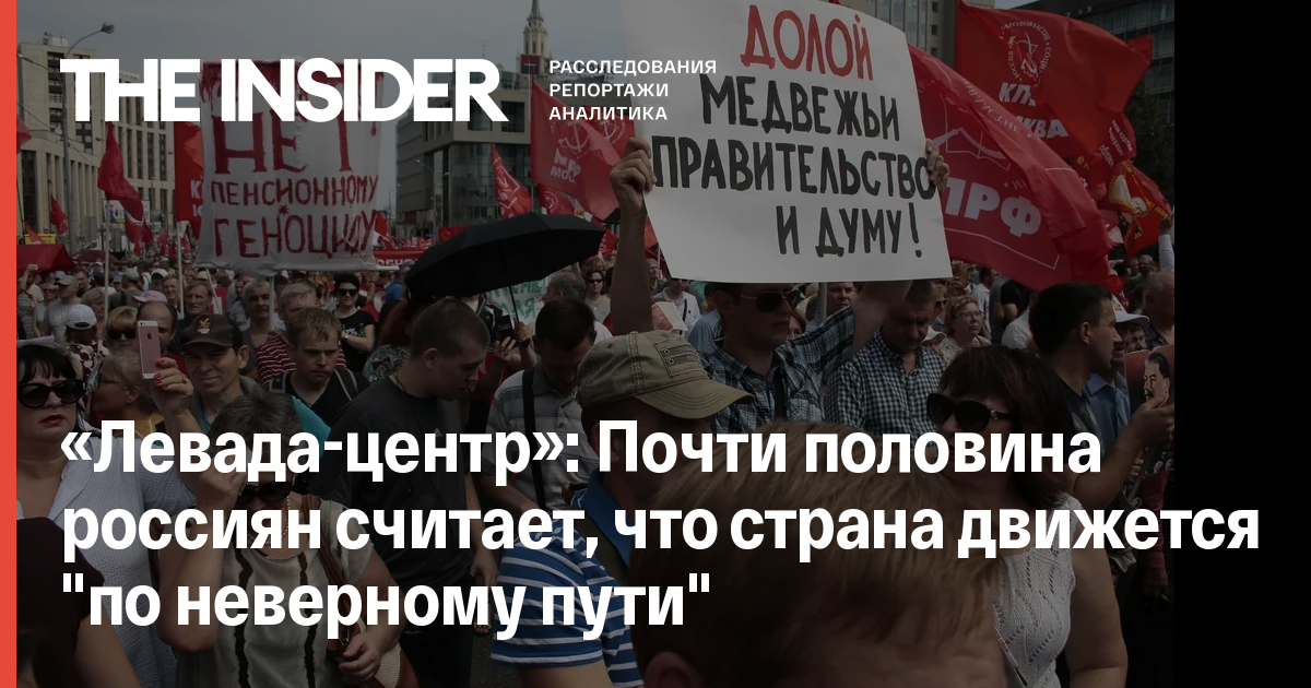 44% россиян, опрошенных «Левада-центром», считают, что страна движется «по неверному пути». В декабре прошлого года так считали 28% респондентов. В 2005 году так считали 46% опрошенных, с тех пор этот показатель стабильно падал.