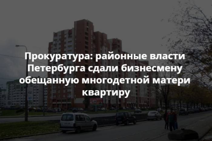 Прокуратура Петербурга установила, что администрация Красносельского района города предоставляла государственную квартиру бизнесмену вместо многодетной матери, которая стояла в очереди на жилье.