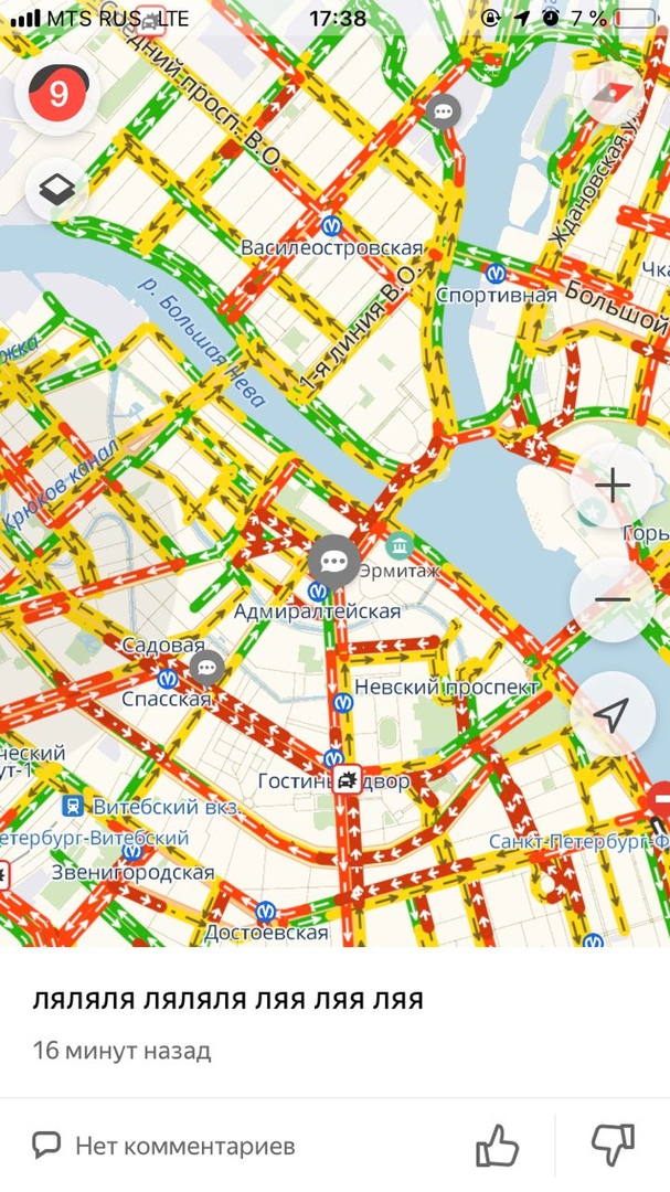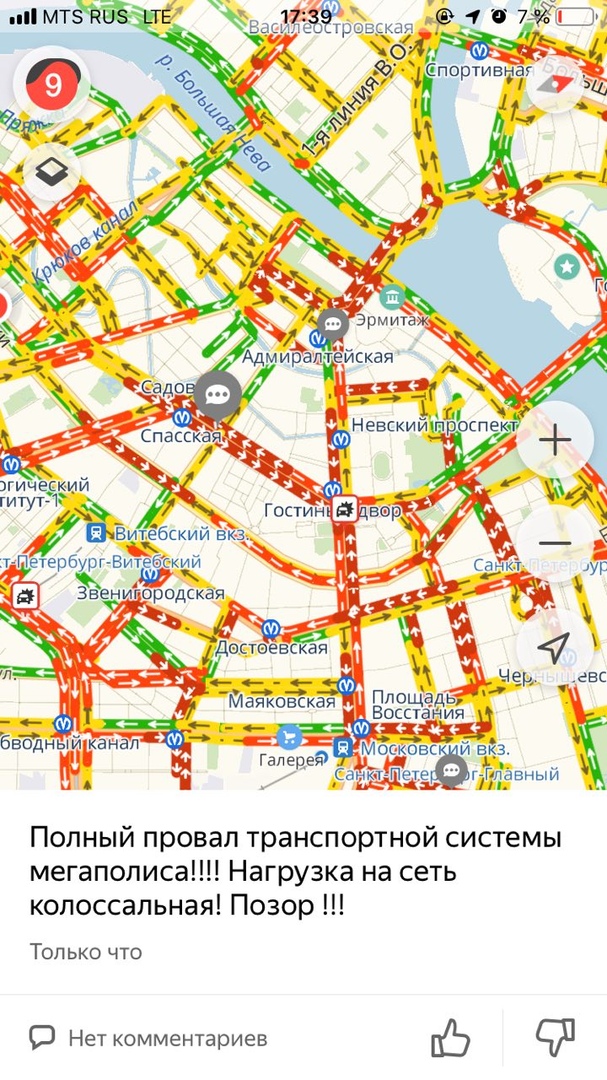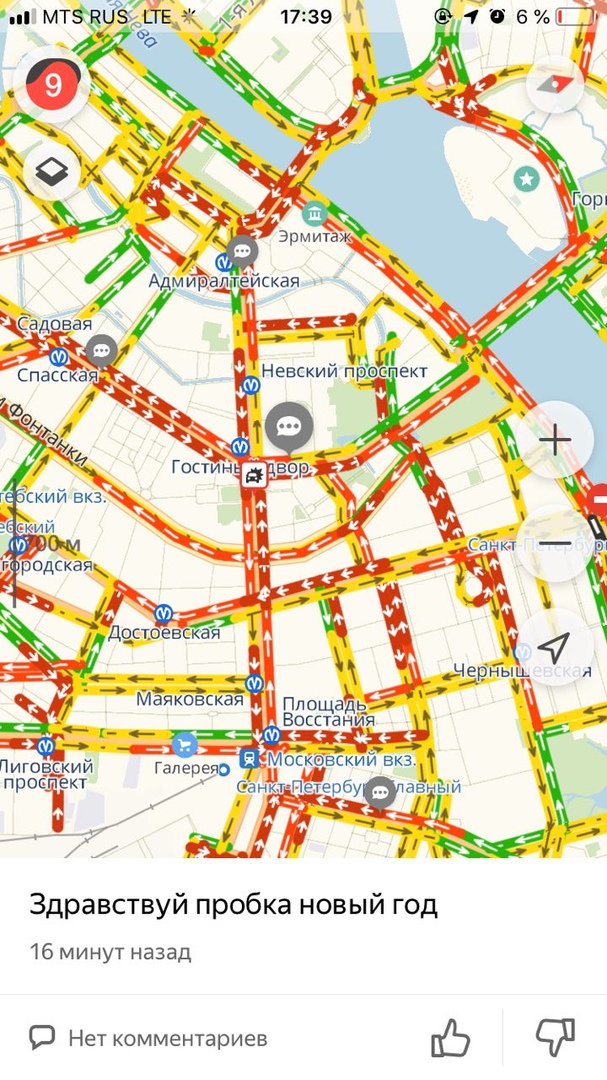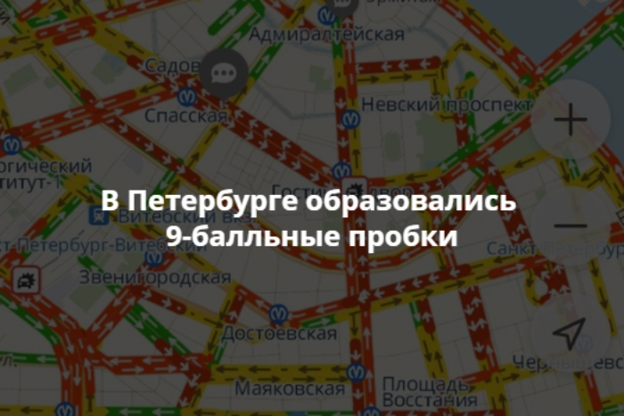 Так, пробки образовались на протяжении практически всего Невского проспекта, а также на улицах около станций метро «Спасская», «Звенигородская», «Достоевская», «Лиговский проспект» и на юге Васильевского острова.