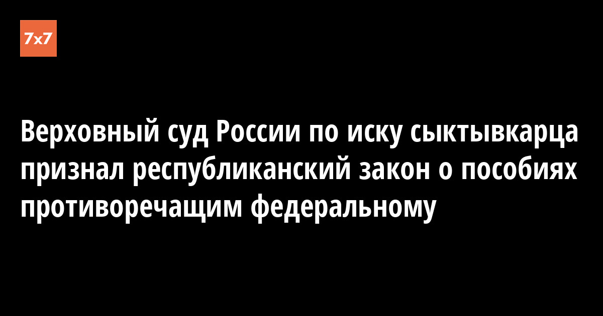 Верховный суд России по иску сыктывкарца признал республиканский закон о пособиях противоречащим федеральному