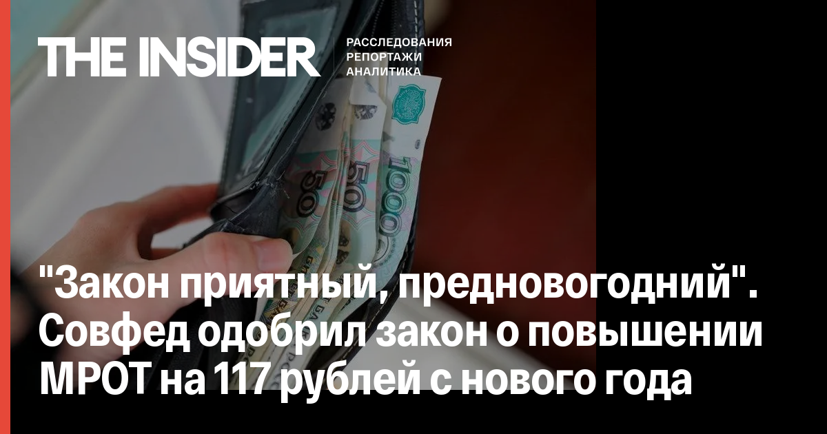 "Закон приятный, предновогодний". Совфед одобрил закон о повышении МРОТ на 117 рублей с нового года