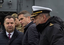 Британский министр посетил корабль HMS Echo вместе с украинским коллегой Степаном Полтораком и встретился с семьями украинских моряков, захваченных Россией 25 ноября в Керченском проливе.