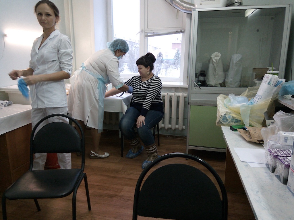 Татьяна Бурыгина приехала в процедурную ЦРБ к 16:00, на это время назначили начало акции. Кровь на типирование не нужно сдавать натощак, потому что съеденный обед на генотип человека никак не влияет. «Народ уже ждал, — вспоминает Татьяна, — то есть люди начали приходить заранее и приходили, скажем так, толпами. Идут и идут! Заведующая лабораторий тоже это видит, и говорит: „Так, ну мы достаем свои пробирки“. Лаборанты невозмутимо достали свои материалы и продолжили работать. Они с самого начала были уверены в своих земляках. Поток [людей] неостановимый шел до вечера самого. Мы часов в девять, наверное, последнего приняли».