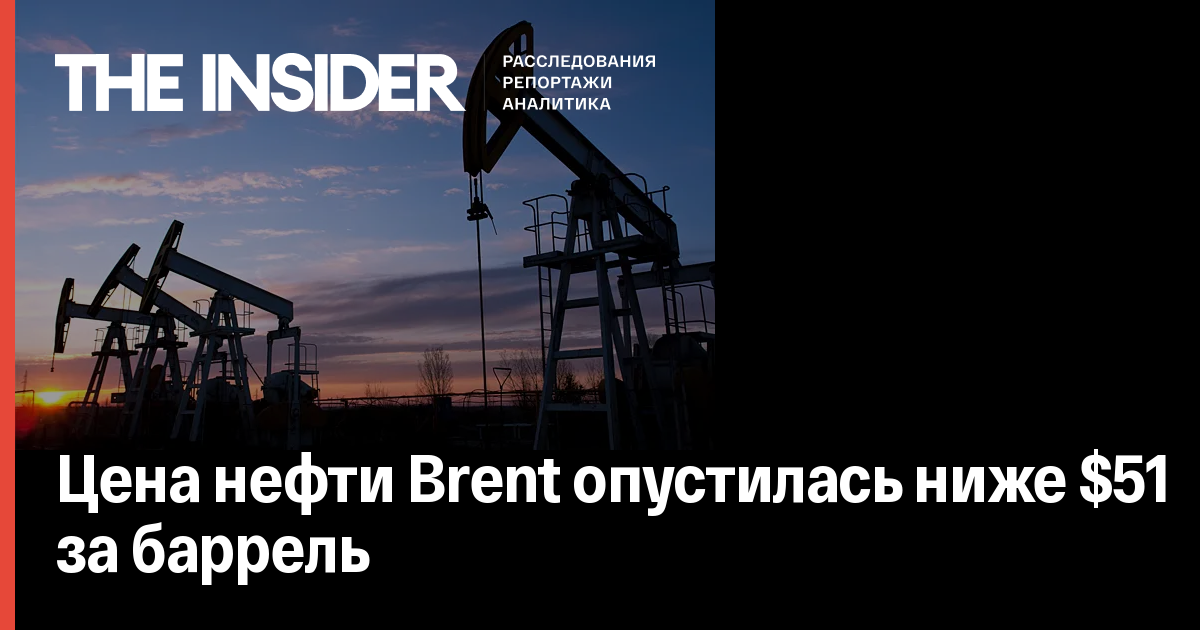 По состоянию на 21:15 мск цена нефти составляла $51,49 за баррель. Позже стоимость барреля нефти Brent впервые с 31 августа 2017 года опустилась ниже $51 — до $50,97.
