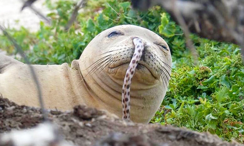 Гавайским тюленям-монахам угрожает вымирание. К началу 21-го века их популяция из-за тюленьего промысла сократилась всего до 1400 особей. Промысел запретили, но численность не восстанавливается. Тюлени продолжают массово гибнуть от болезней, глобального потепления и сетей рыбаков. Теперь к их проблемам прибавилась ещё одна: угри в носу. Не на носу, а именно в носу. И не угри-прыщи, как у подростков, а настоящие плавающие угри из рода лучепёрых. Фотографию одного такого молодого тюленя с застрявшим в носу угрём недавно перепечатали ведущие мировые СМИ, и учёные утверждают, что это не первый подобный случай. Причём все тюлени с угрями в носу попались биологам в последние два года; за всё предыдущее время наблюдений – около 40 лет – ничего подобного учёные не видели. Каким образом угри попадают тюленям в нос, учёные пока не знают, но, учитывая то, что все найденные учеными тюлени с угрями в носу были очень молодыми, и то, что угорь всегда торчал у них только из правой ноздри, возможно, это просто какая-то новая подростковая мода.