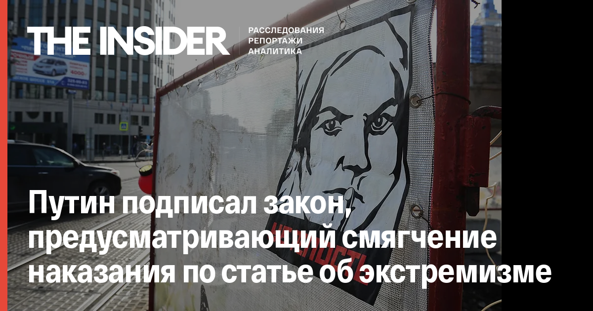 Путин подписал закон, предусматривающий смягчение наказания по статье об экстремизме