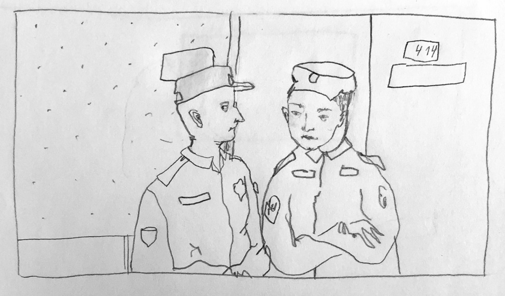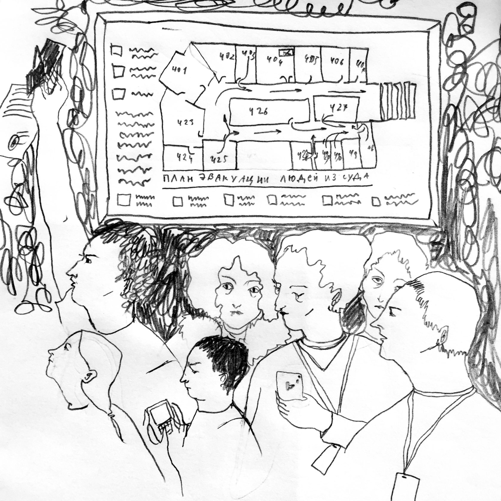 Статью для нас проиллюстрировала художница Катя Хасина, которая вчера была на вынесении приговора Егору. После того, как Кунцевский суд запретил журналистам снимать фото или видео на вынесении приговора, мы решили попросить Катю сходить в суд и изобразить то, что происходит внутри и за его стенами.