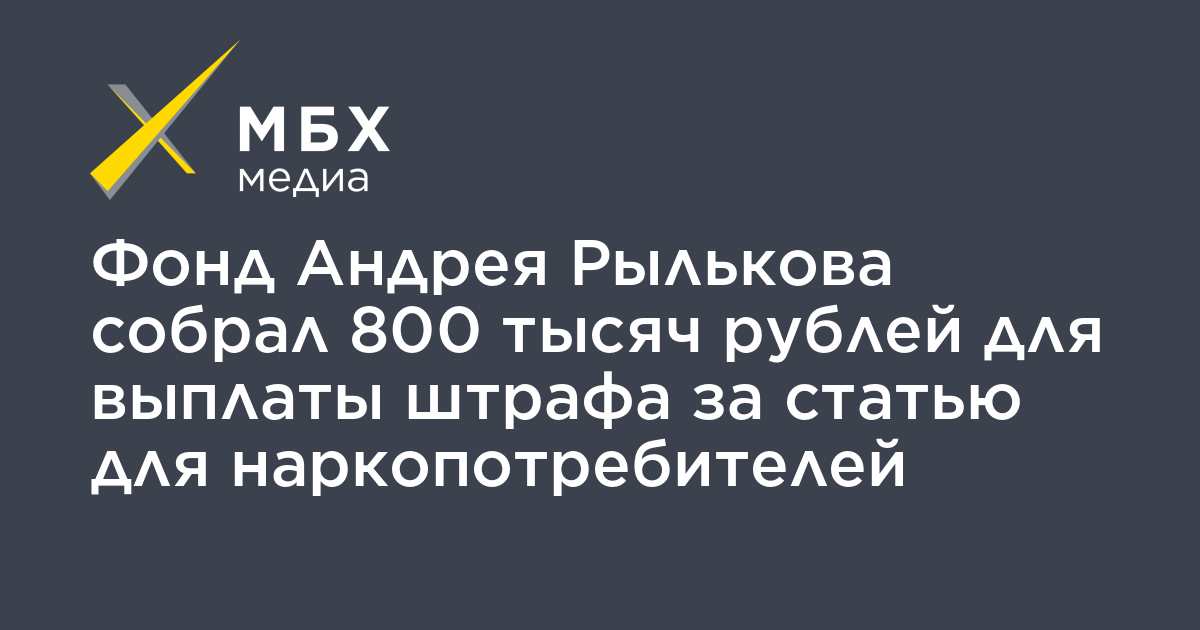 Фонд Андрея Рылькова собрал 800 тысяч рублей для выплаты штрафа за статью для наркопотребителей