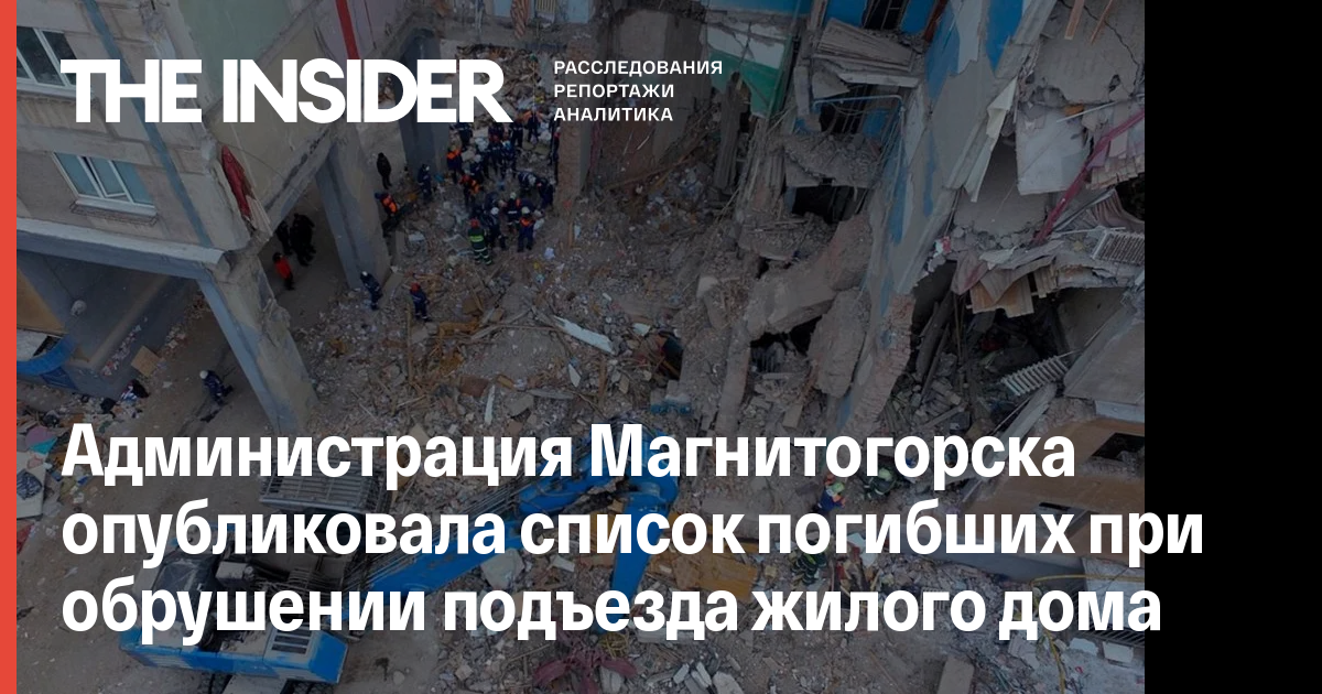 Администрация Магнитогорска опубликовала список погибших при обрушении подъезда жилого дома