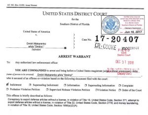 • Макаренко обвиняется в экспорте из США военных технологий без необходимой для этого лицензии, а также в отмывании денег, следует из ордера.