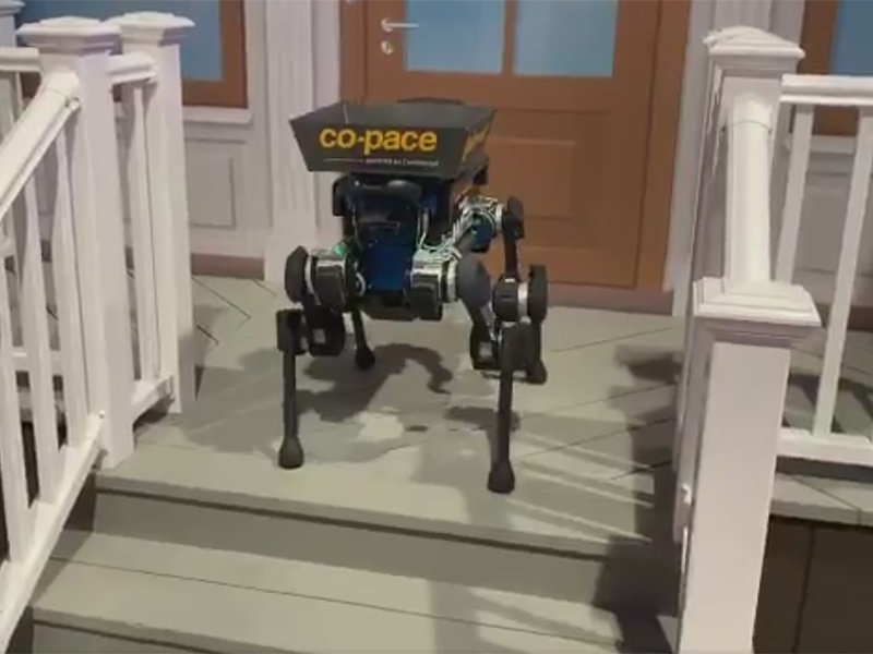 Позднее сотрудники Continental провели демонстрацию доставки посылки к порогу дома при помощи робота. Не небольшом ролике видно, как собакоподобный робот с коробкой на спине не без труда забирается на крыльцо, звонит в дверь, а затем сбрасывает посылку у двери, не дождавшись ответа. Весь процесс занял в несколько раз больше времени, чем при доставке заказа курьером.
