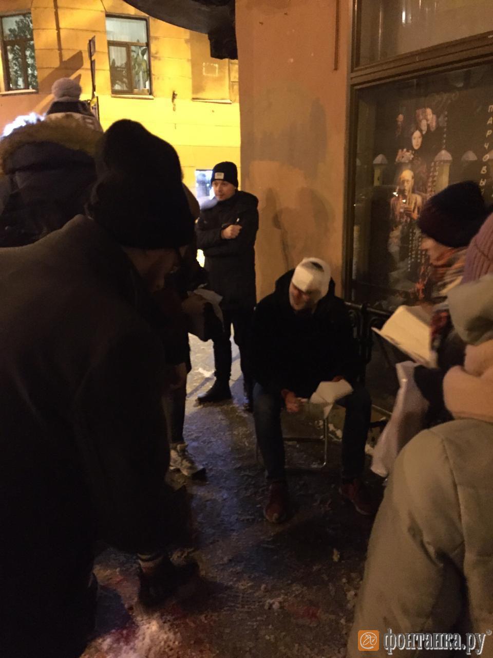 Как пишет издания, пострадавшего усадили на принесенный из магазина стул и перевязали ему голову бинтами.