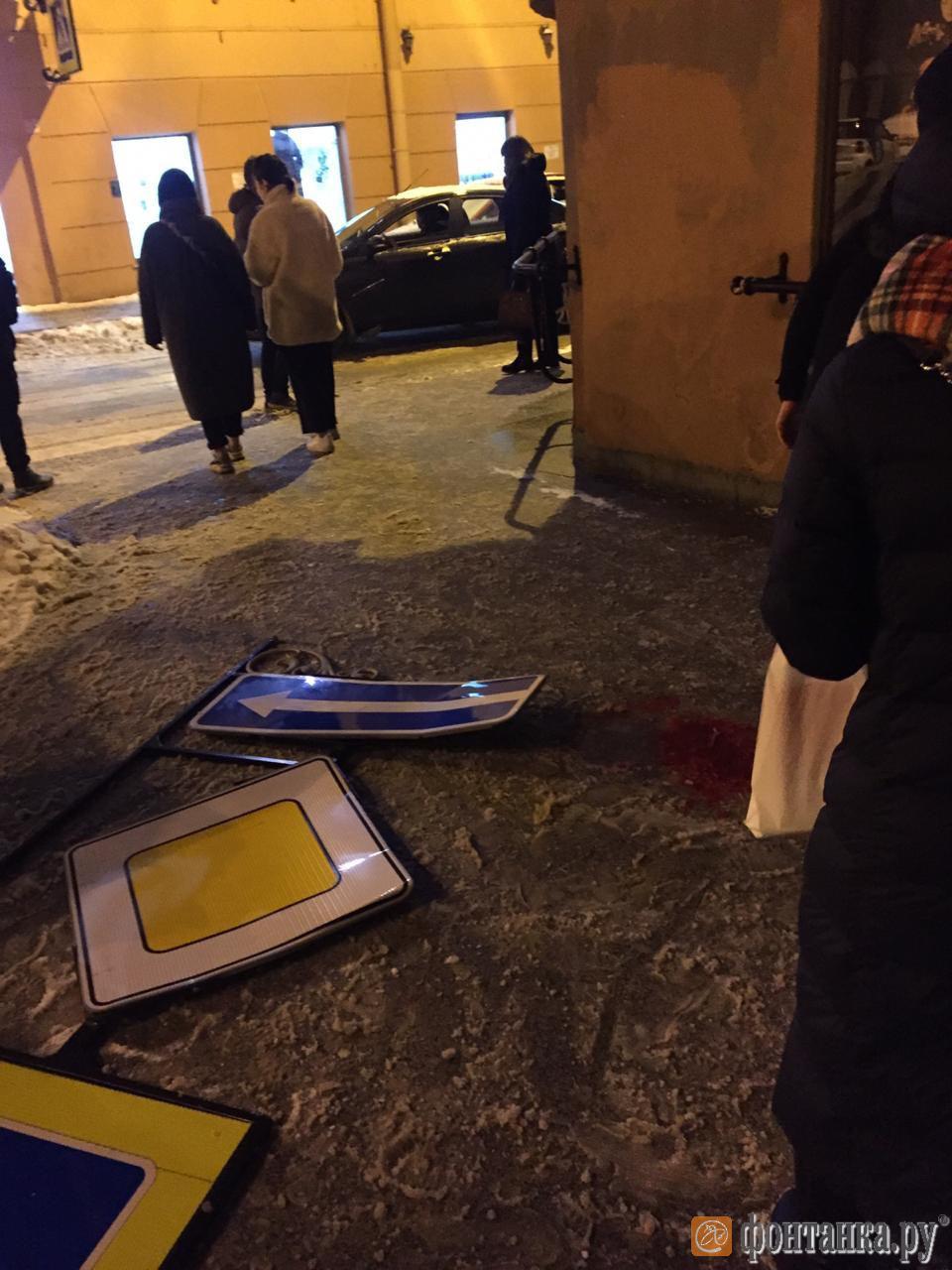 Около семи вечера 11 января на перекрестке улицы Рубинштейна и Графского переулка ветер из-за сильного ветра на прохожего упал дорожный знак, передает «Фонтанка».