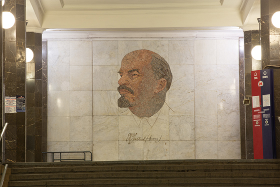 © Александр Попов Флорентийская мозаика с профилем Ильича работы Григория Опрышко появилась на «Библиотеке имени Ленина» в первой половине 1960-х Чтобы не допустить ошибки в описании «Добрынинской», Евгении Гершкович достаточно было добраться до этой станции и подняться в вестибюль. Тогда бы она обнаружила, что знак «Гвардия», заменивший на панно профили Ленина—Сталина, находится не посередине, а слева. Ничего не сказано и о правом панно, где Иосифа Виссарионовича заменили на Юрия Гагарина.