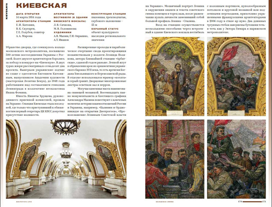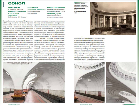 «Я разбираю историю создания 99 станций, анализирую стилевые особенности каждой. Кажется, до меня этим никто не занимался — подобных работ, насколько я знаю, ранее не публиковалось», — говорит Гершкович в интервью, приуроченном к выпуску гида. Тут можно поймать автора на лукавстве: ведь результаты предыдущих попыток у нее даже указаны на странице библиографии.