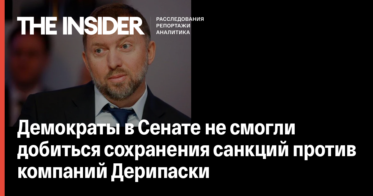 Демократы в Сенате США не смогли добиться сохранения санкций против компаний, связанных с Олегом Дерипаской, сообщает Bloomberg.
