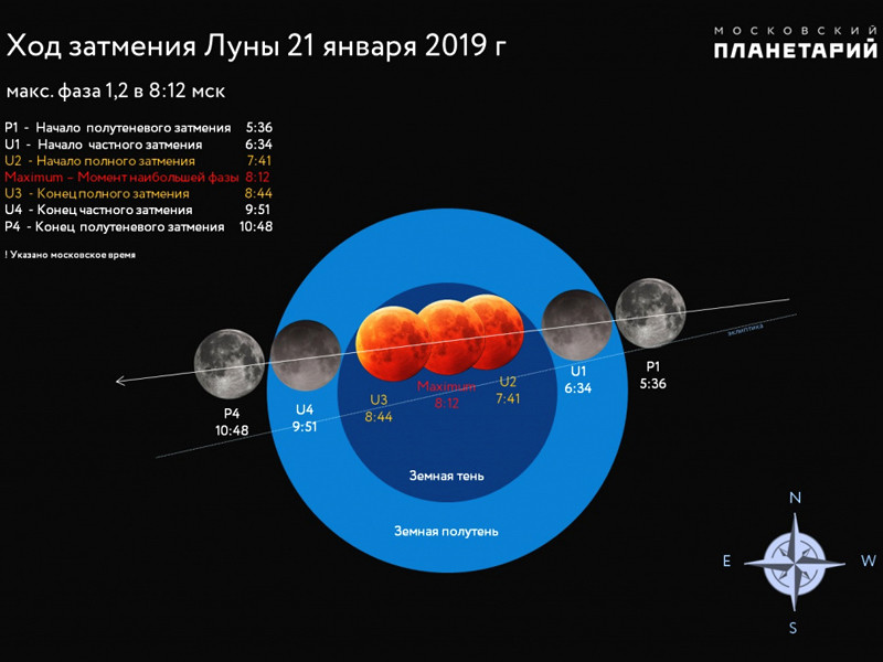 Лунное затмение смогут увидеть жители России, в том числе Петербурга и Москвы, утром 21 января, передает "Интерфакс".