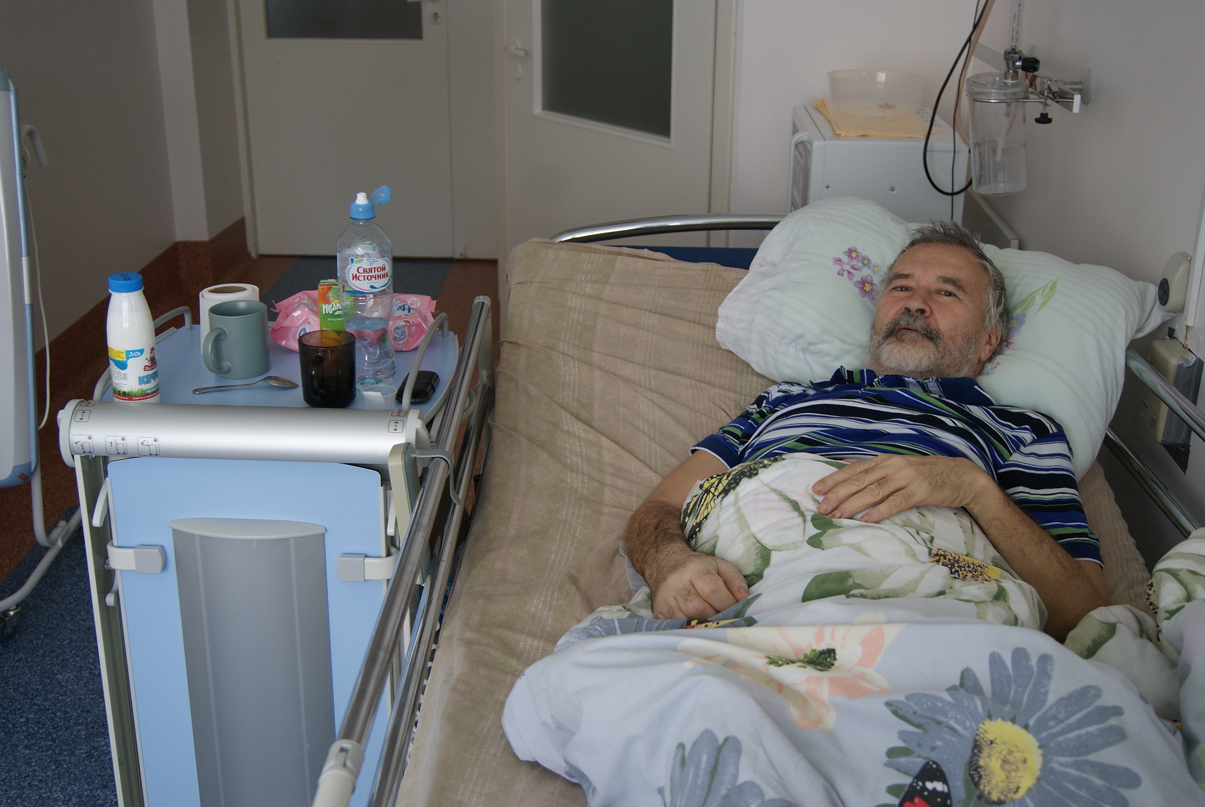 Корреспондент Радио Свобода навестил правозащитника в хосписе в начале января, на третий день лечения. Он не встает, правые рука и нога у него парализованы. Лечащий врач не скрывает, что ситуация тяжелая.