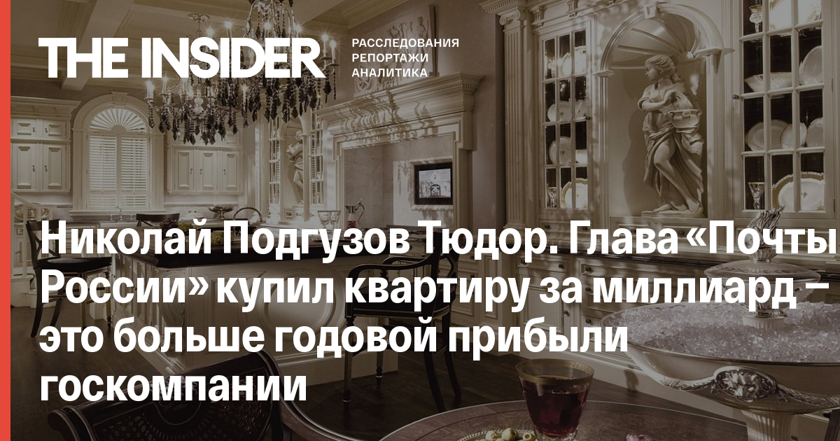 Николай Подгузов Тюдор. Глава «Почты России» купил квартиру за миллиард — это больше годовой прибыли госкомпании