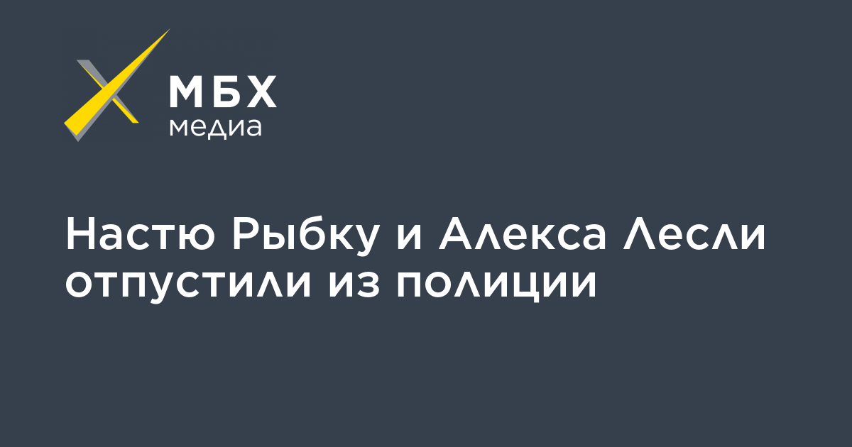 Настю Рыбку (Анастасию Вашукевич) и Алекса Лесли (Александра Кириллова) отпустили из полиции, ранее они были задержаны по делу о вовлечении в занятие проституцией. Об этом сообщила «МБХ медиа» адвокат Лесли Светлана Сидоркина.