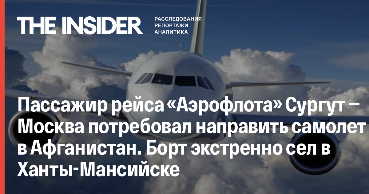 «Во время полета один из пассажиров лайнера Сургут — Москва потребовал направить лайнер в Афганистан», — сказал собеседник агентства.