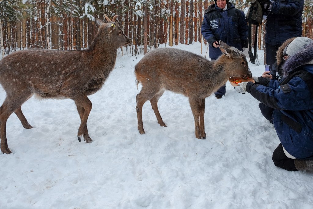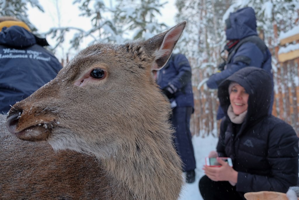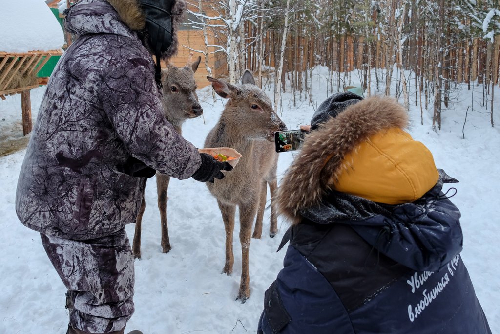 Откушали? Пожалуйте кормить оленей. Пятнистых! Настоящие Бэмби. Охотхозяйство тем и занимается, что поддерживает популяцию всякого зверья — полезное дело, кстати.