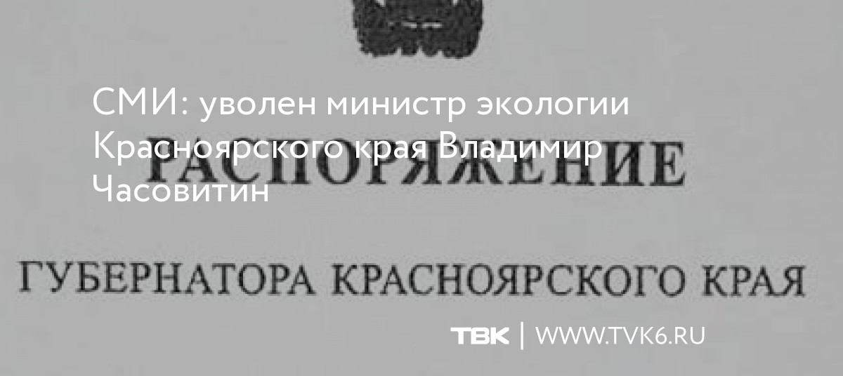 На сайте правительства региона Новости ТВК документа не обнаружили. Напомним, что ранее источник в правительстве края сообщал, что министр экологии и рационального природопользования Красноярского края Владимир Часовитин может уйти в отставку после отпуска.