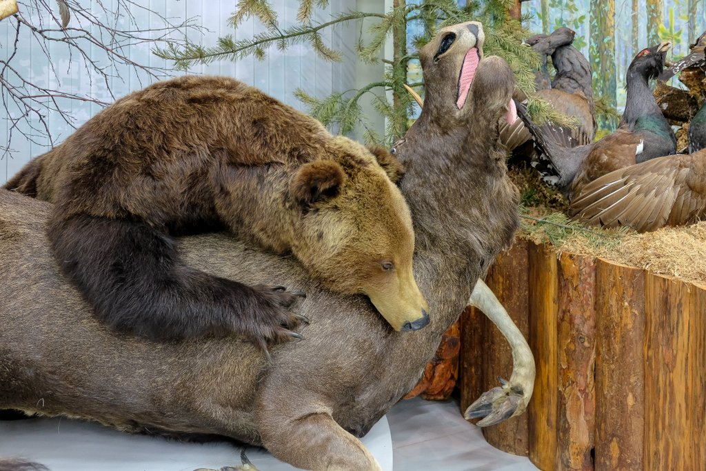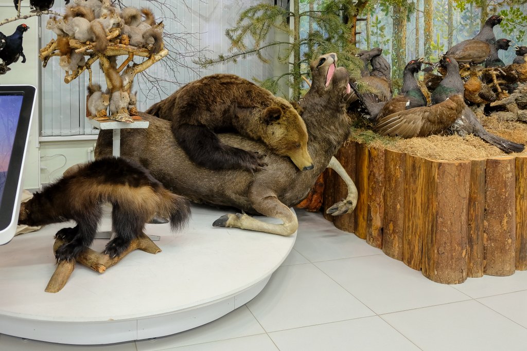 ...никакие фотокарточки или видеоролики не передадут всего, что можно увидеть здесь. Уголок с таксидермизацией детских сказок все признали? Дед Мазай, «битый небитого везет»... Ребятне тут раздолье.