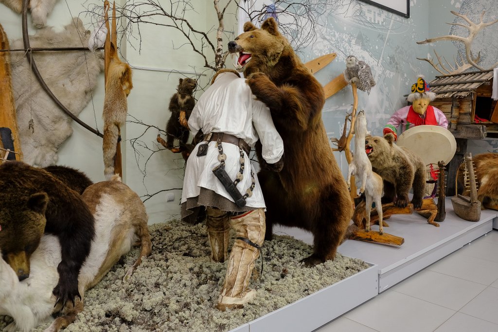 ...некоторые экспонаты я узнавал еще по прошлому визиту. Радовался как старым знакомым. Но и новых прибавилось изрядно. Площади-то теперь позволяют и лося в полный рост, и медведя, и чум из шкур походный…