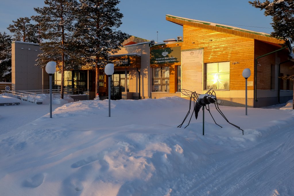 Кто бы мог подумать, что обещание Ядрошникову Александру Павловичу: «Обязательно к вам вернусь, когда достроите новый музей и ваша экспозиция переедет из щитового домушки в капитальное здание!» — воплотится в жизнь всего через шесть лет. Я снова в Русскинской. Вот площадь, вот транформаторная подстанция, стела при въезде тоже не изменилась особо, но где, простите, щитовой домишко на три комнатки, в котором я шесть лет назад приобщался к культуре тром-аганских ханты и поражался ловкости рук таксидермиста-энтузиаста?