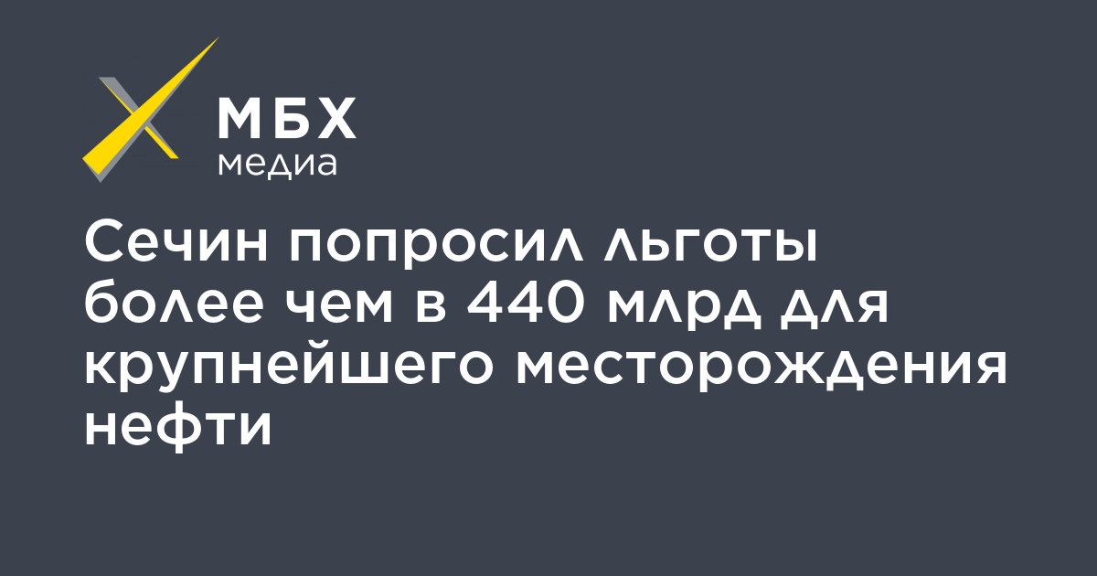 Сечин попросил льготы более чем в 440 млрд для крупнейшего месторождения нефти