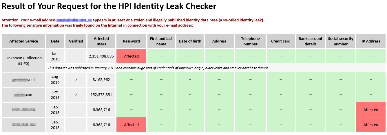 Что делать? Проверить свой логин/пароль на присутствие в базе можно здесь. Результат придет на указанную почту и будет выглядеть так: