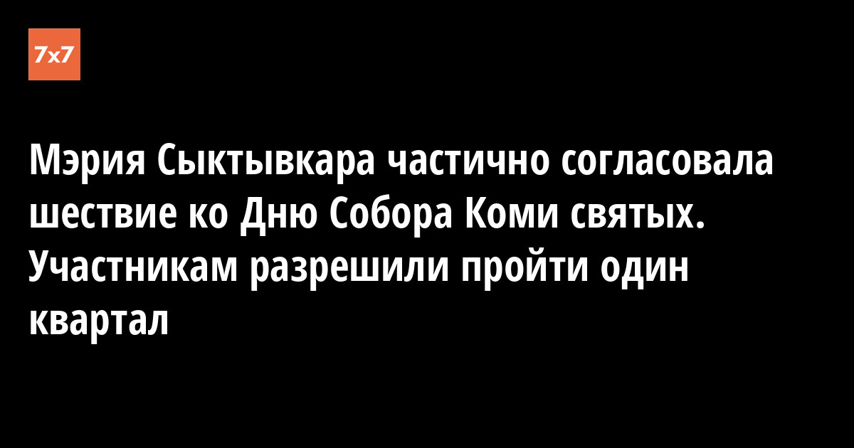 Администрация Сыктывкара частично согласовала шествие с молебном на 9 февраля ко Дню Собора Коми святых, который отмечается 11 февраля. В этот день жители вспоминают репрессированных в советское время священников. Заявку на проведение подали три частных лица, один из них правозащитник Игорь Сажин. Об этом он сообщил «7х7» 1 февраля.