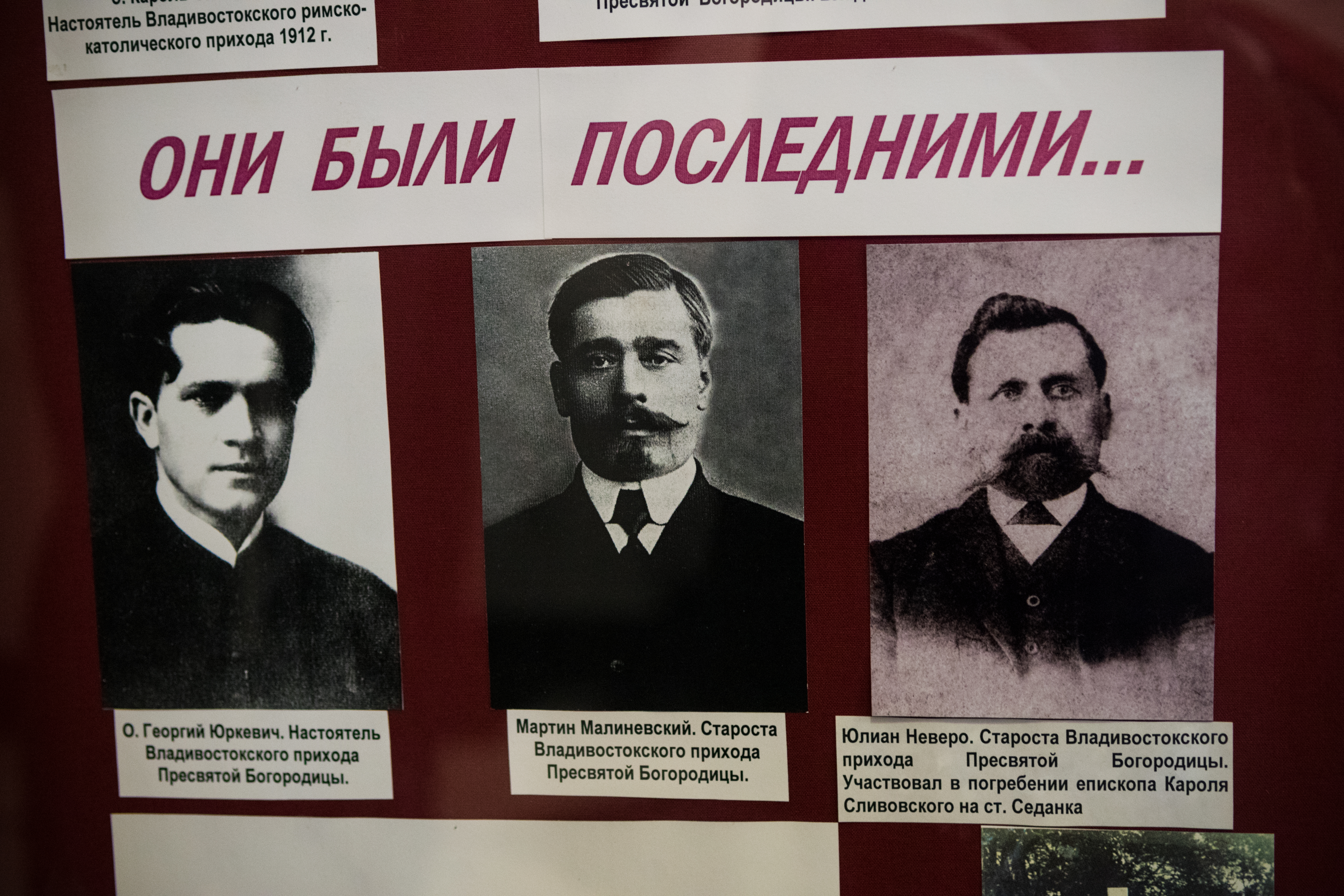 В католическом храме Пресвятой Богородицы во Владивостоке есть специальный стенд, посвящённый репрессированным прихожанам и духовенству – людям, которые, пожертвовав жизнью, не отступили от своей веры.