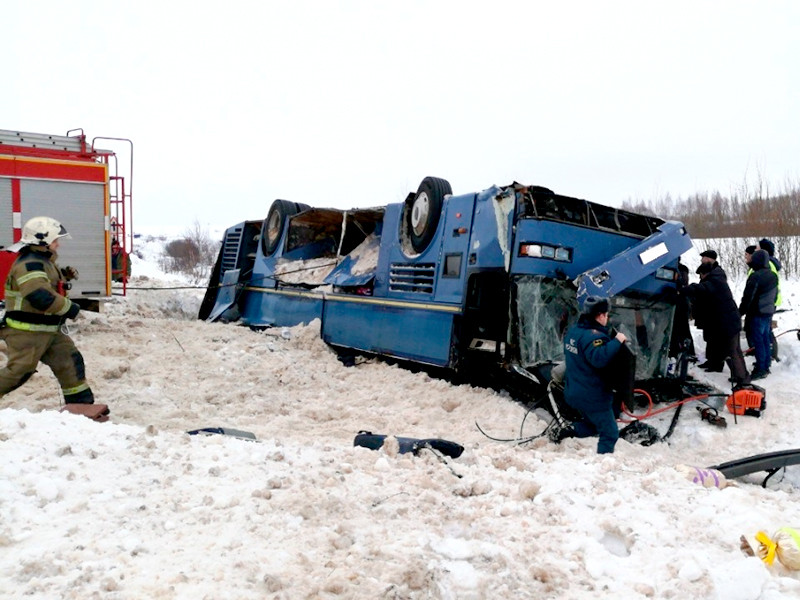 Утром в воскресенье, 3 февраля, 128-м км дороги Калуга - Вязьма автобус опрокинулся в кювет.