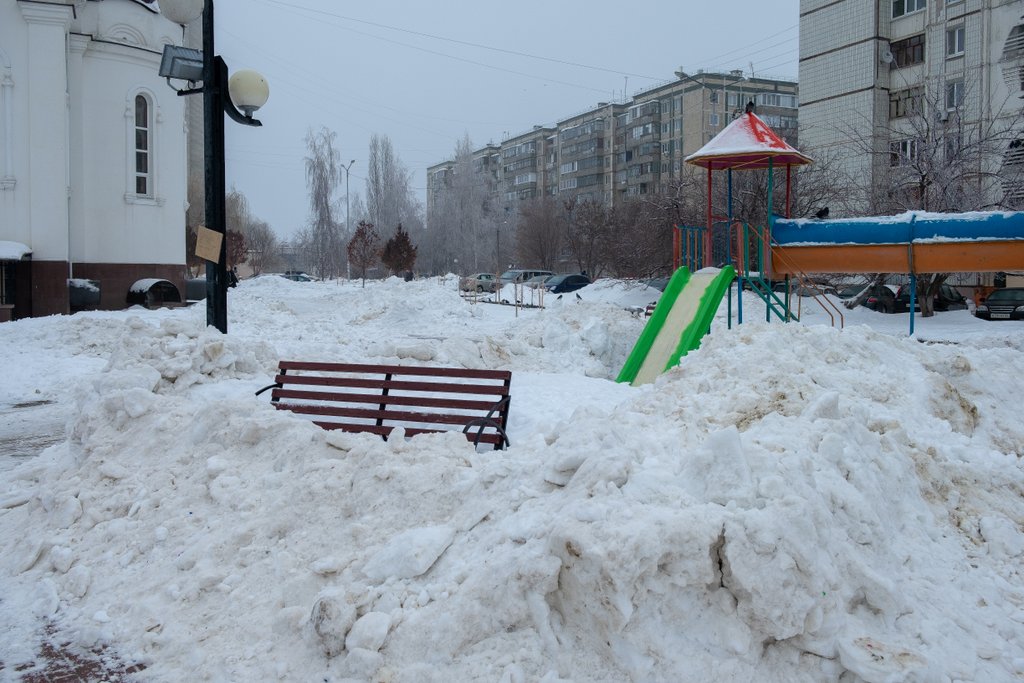 Работа ради работы — это форменное безобразие. Сгрести отвалом снег на детскую площадку — верх инженерного гения. По факту вся площадка окружена снежным валом. Небезопасненько…