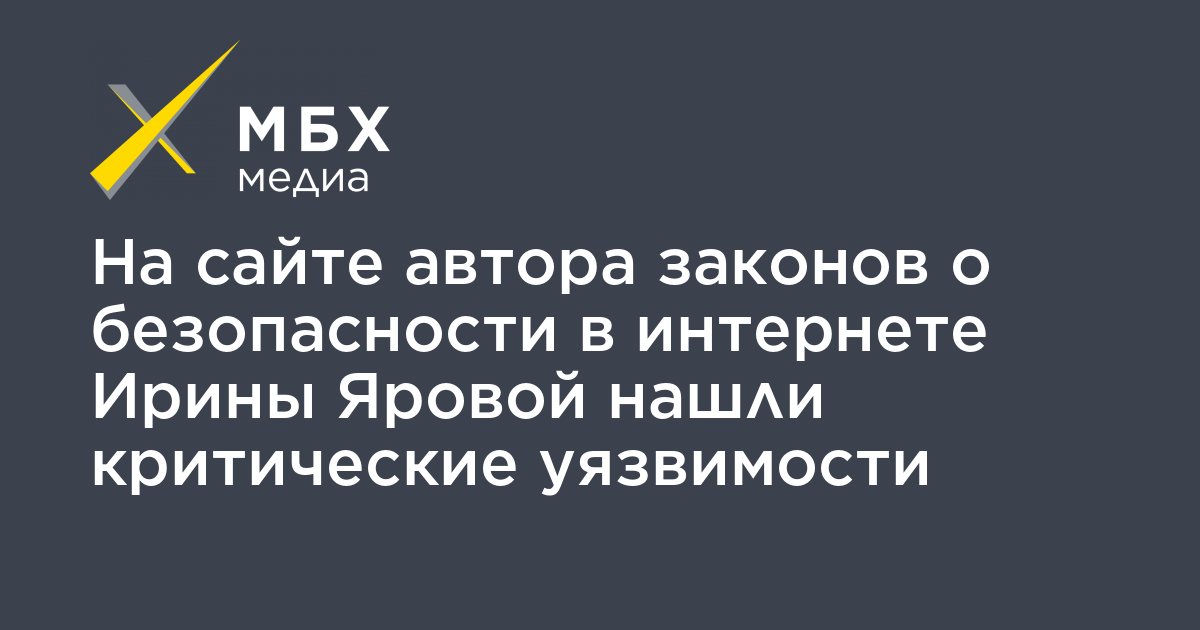На сайте вице-спикера Госдумы (органа власти, оправдывающего сексуальные домогательства) Ирины Яровой, которая выступает за безопасность интернета, нашли критические уязвимости, об этом «МБХ медиа» рассказал специалист по кибербезопасности, гендиректор компании Vee Security Александр Литреев.