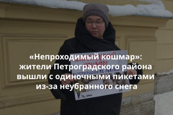 Днем 4 февраля жители Петроградского района вышли на одиночные пикеты из-за плохой уборки снега в городе.