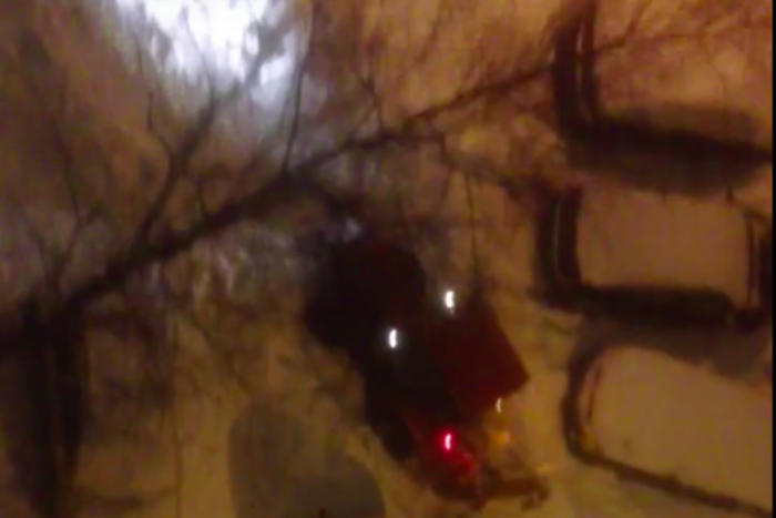 На улице Верности во дворе жилого дома застрял трактор. Местный житель снял видео того, как машина пытается выбраться из снежного покрова. По его словам, трактор пытался выехать как минимум час.